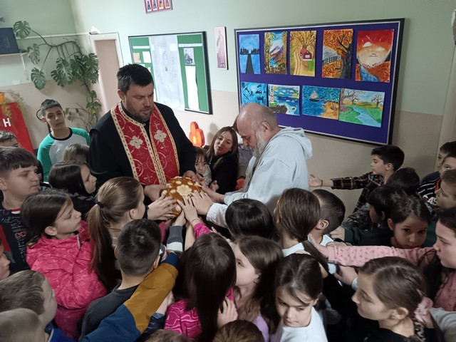 Обележавање је започело свечаном Литургијом у Храму Светог архангела Гаврила, где су ученици, заједно са својим наставницима и директорком школе, учествовали у молитвеном сабрању. Ученици су активно допринели служби појањем, а један од ученика имао је част да чита Апостол. Након Литургије, у храму су изведене рецитације које су припремили ученици под вођством свог вероучитеља, чиме су додатно увеличали празник. Том приликом, деца су добила пакетиће као симбол радости и даривања. Прослава се наставила у школи, где је у 12 часова обављено свечано освећење славског колача. Домаћин славе ове године био је наставник математике Жарко Шуманов. Ученици су активно учествовали у овом важном обреду, показујући поштовање према традицији и наслеђу Светог Саве. У холу школе је потом одржан пригодан програм који су извели чланови Литургијске секције. Уз појање химне Светом Сави, рецитовање песама и извођење текстова посвећених првом српском архиепископу и просветитељу, ученици су још једном истакли значај овог празника за наш народ и школство.