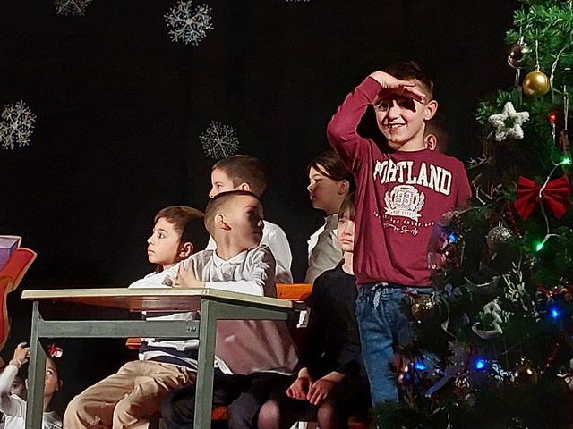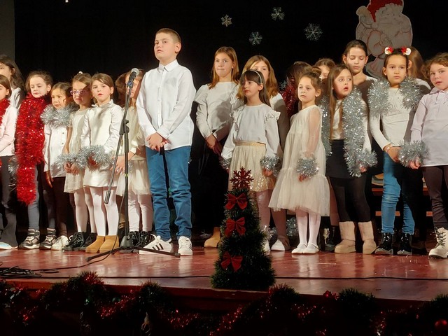 Божићни део приредбе подсетио је присутне да је Божић празник мира, љубави и милосрђа, као и да Христу највише чинимо онда када показујемо бригу и помоћ једни према другима. Новогодишњи део донео је ведрину, осмехе и поруке мира на различитим језицима, док су најмлађи ученици оживели ликове из познатих бајки – од Црвенкапиног вука, преко Пепељуге и Снежане, па све до Три прасета.