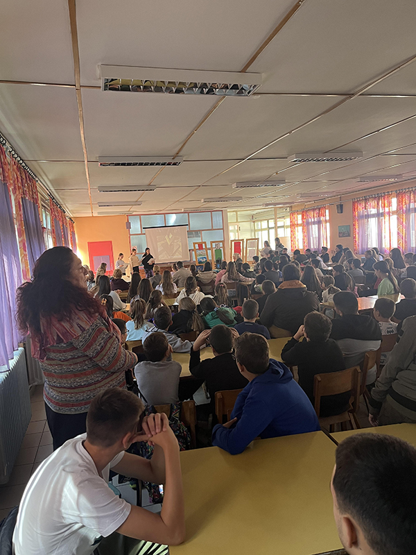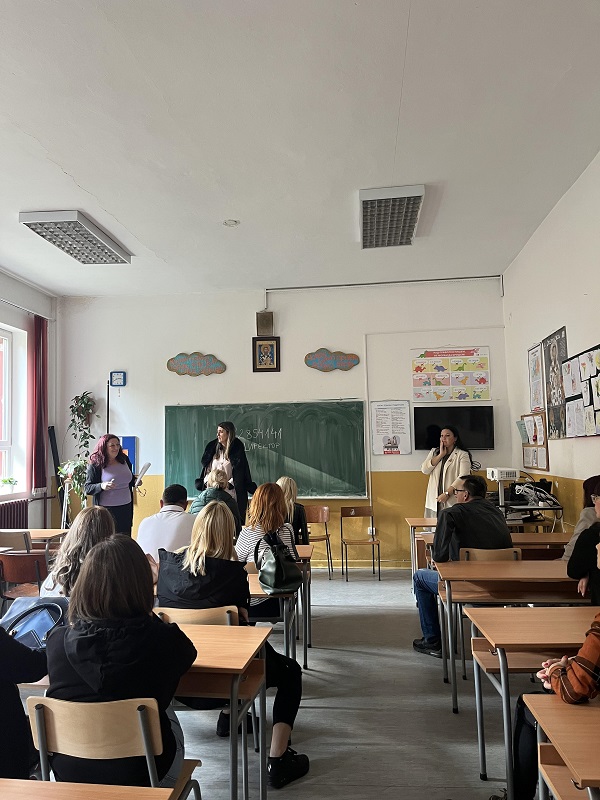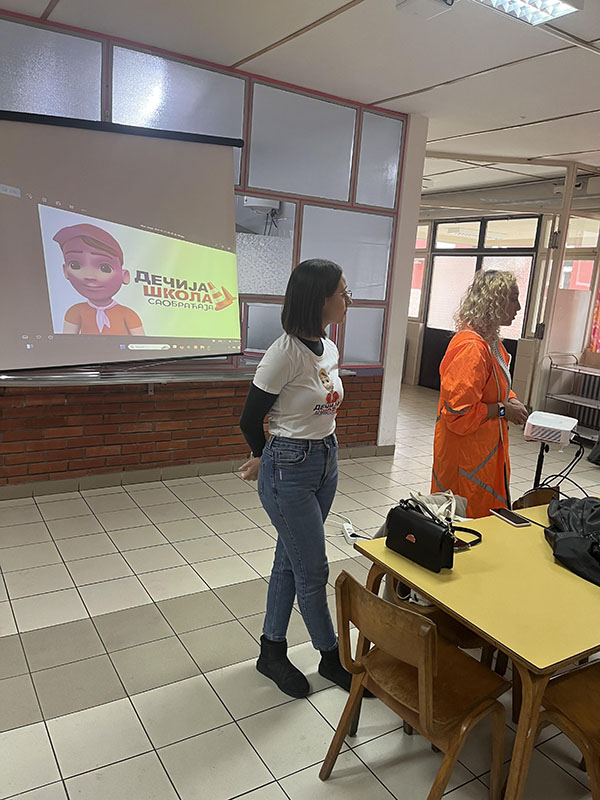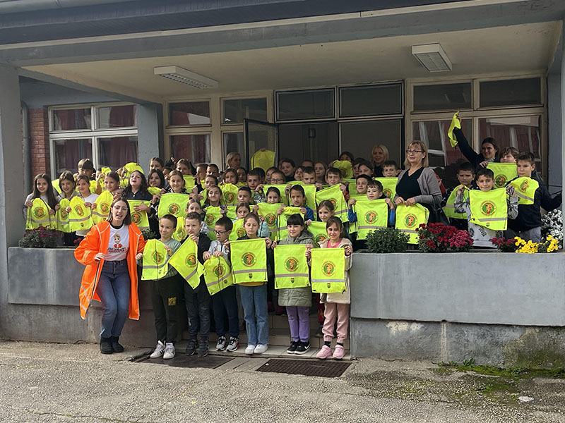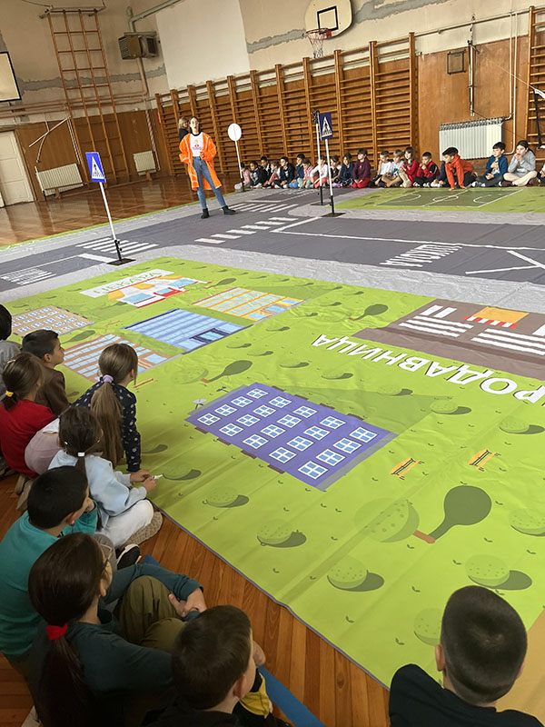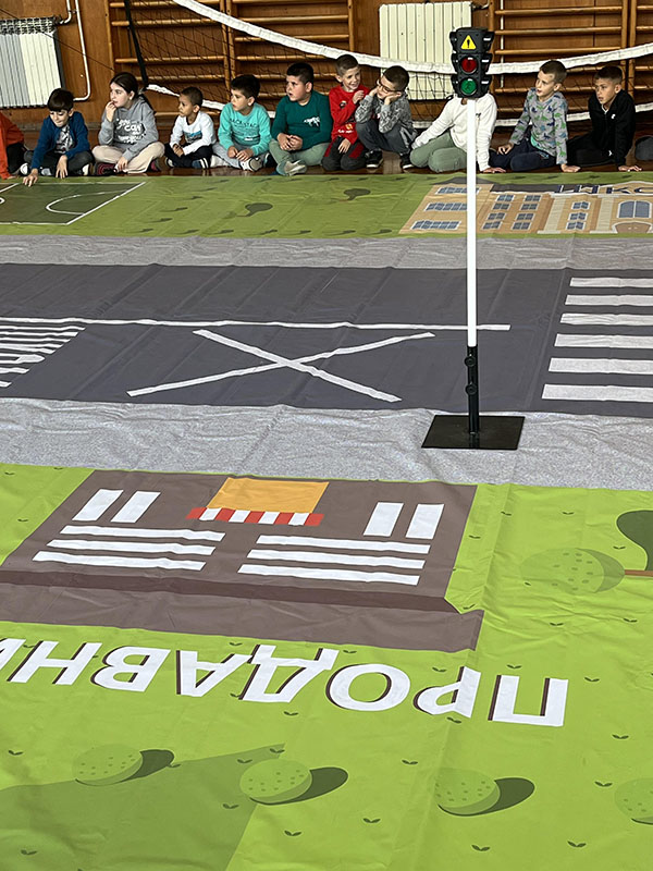 У ђачкој трпезарији на виртуелном саобраћајном полигону ученици трећег и четвртог разреда подсетили су се правила саобраћаја и са едукаторима/ студентима Саобраћајног факултета из Београда заједно, безбедно “прелазили улицу” преко пешачког прелаза. Такође за ученике првог и другог разреда у фискултурној сали на монтажно демонтажном полигону припремљен је сценарио безбедног преласка улице на пешачком прелазу. Ученици су са задовољством пратили предавање, после ког је уследио практични део безбедног понашања пешака у саобраћају. Ученици су овом приликом добили прилкадне поклоне: светлеће наруквице, прслуке, ранчеве и привеске. Едукатори: Теодора Ћирковић, Биљана Митровић, Страхиња Обрадовић и Соња Николас учинили су да ово предавање заиста буде незаборавно и едукативно за наше ученике.