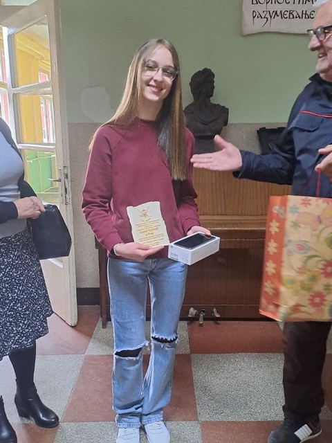 У акцији “Чепом до осмеха” која доприноси буђењу еколошке свести код ученика, за изузетан допринос награђена је ученица Ксенија Ђурђевић, 8 разред.