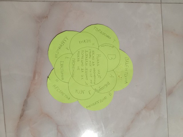 У наставку часа реализована је креативна радионица у којој су ученици правили цвет за свог друга из клупе. Свака латица представљала је по једно слово имена другара, а ученици су уз свако слово исписивали његове врлине. На овај начин подстакнуто је међусобно уважавање, препознавање добрих особина и јачање другарских односа.